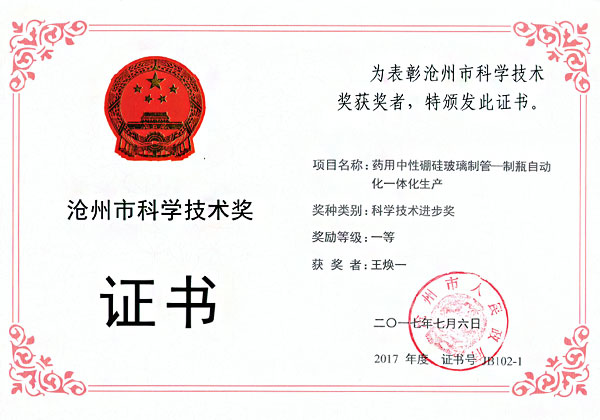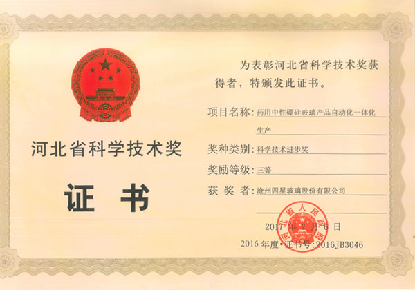 滄州四星玻璃股份有限公司榮獲河北省科學(xué)技術(shù)獎(jiǎng)
