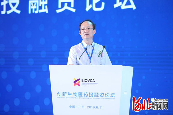 2019年6月11日,滄州四星玻璃股份有限公司董事長王煥一在創(chuàng)新生物醫(yī)藥投融資論壇作主題分享。 滄州四星玻璃股份有限公司供圖