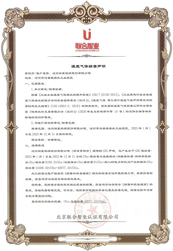 附件:滄州四星玻璃股份有限公司產品碳足跡報告 [點擊查看詳情]